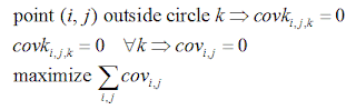 An interesting problem was posed here. Given a set of circles (with given radius) try to cover as much area of a rectangle. Here the circles represent sensors.